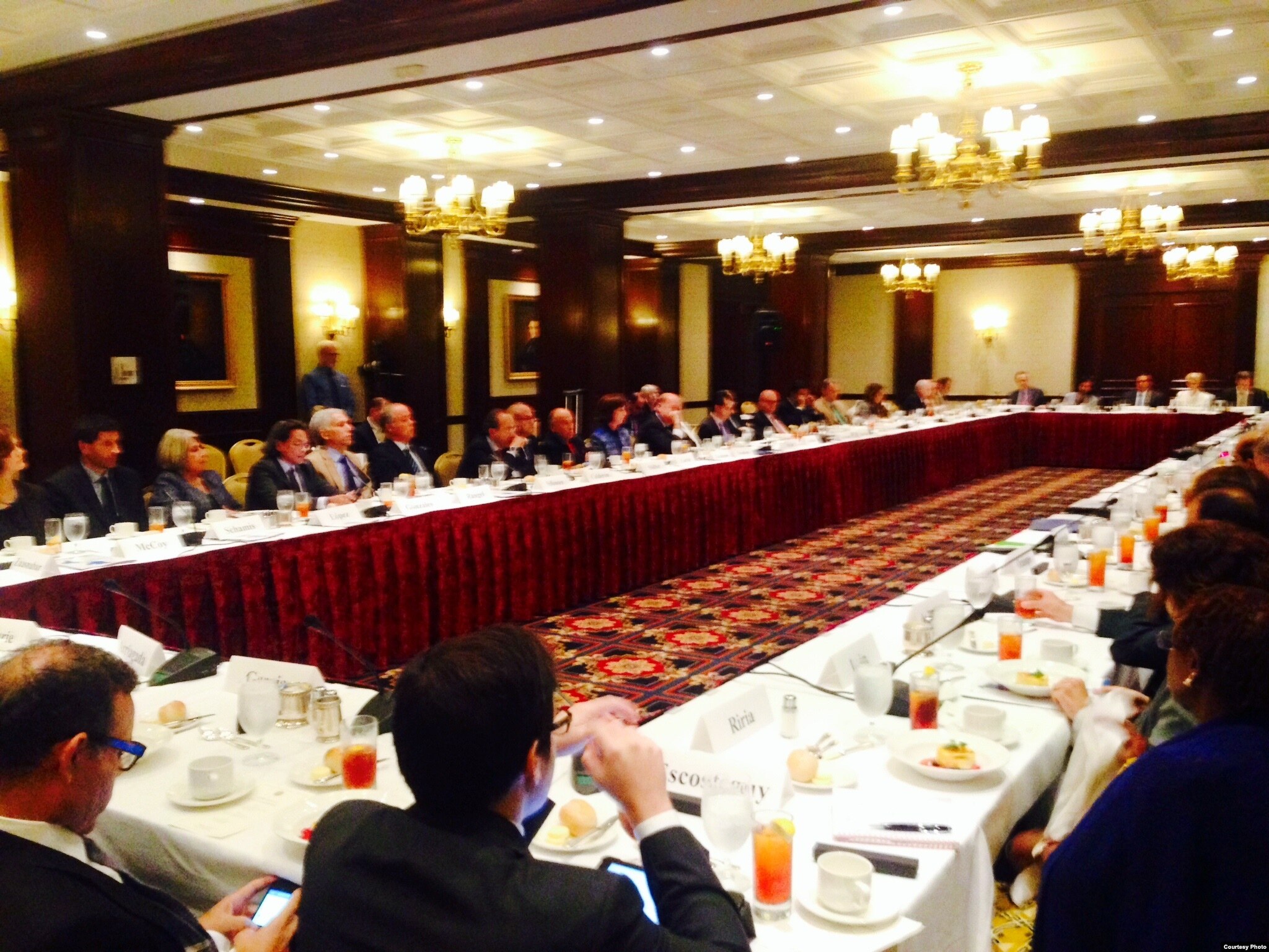 El Secretario General de la OEA, Jose Miguel Insulza, dijo que hay que hablar de Cuba, de las elecciones, de las economías en la región. Michael Shifter, Presidente del Dialogo Interamericano, en sus palabras iniciales hablo sobre los cambios en la región, los retos energéticos, sociales, educacionales y de géneros y la cooperación emergente. Oír diferentes voces, diferentes opiniones es importante, recordó Shifter. Al ex presidente Caldero lo presento al panel Enrique Garcia, quien recordó los avances democráticos en México bajo su mandato, las dificultades económicas cuando asumió el poder, y los retos surgidos en su sexenio.