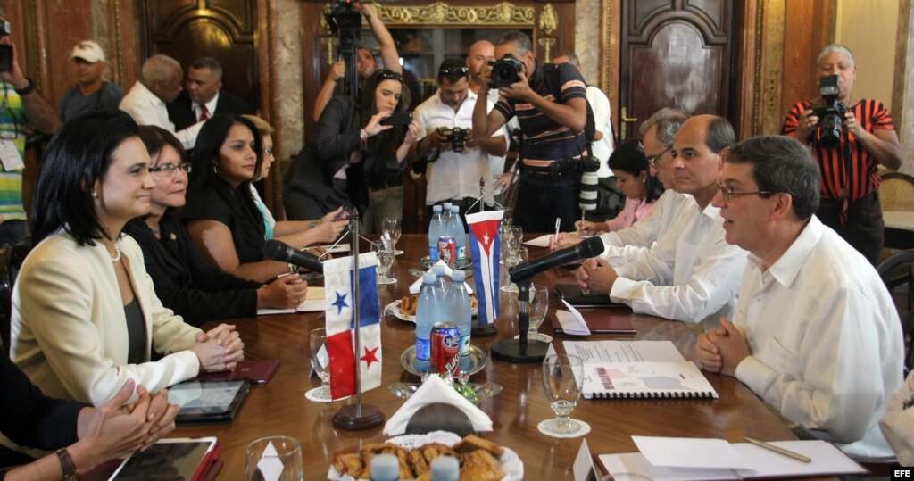 La vicepresidenta y ministra de Exteriores de Panamá, Isabel de Saint Malo de Alvarado (i), se reúne con el ministro cubano de Relaciones Exteriores, Bruno Rodríguez (d), hoy, jueves 18 de septiembre de 2014, en La Habana, Cuba.