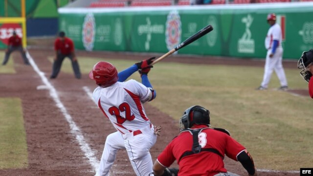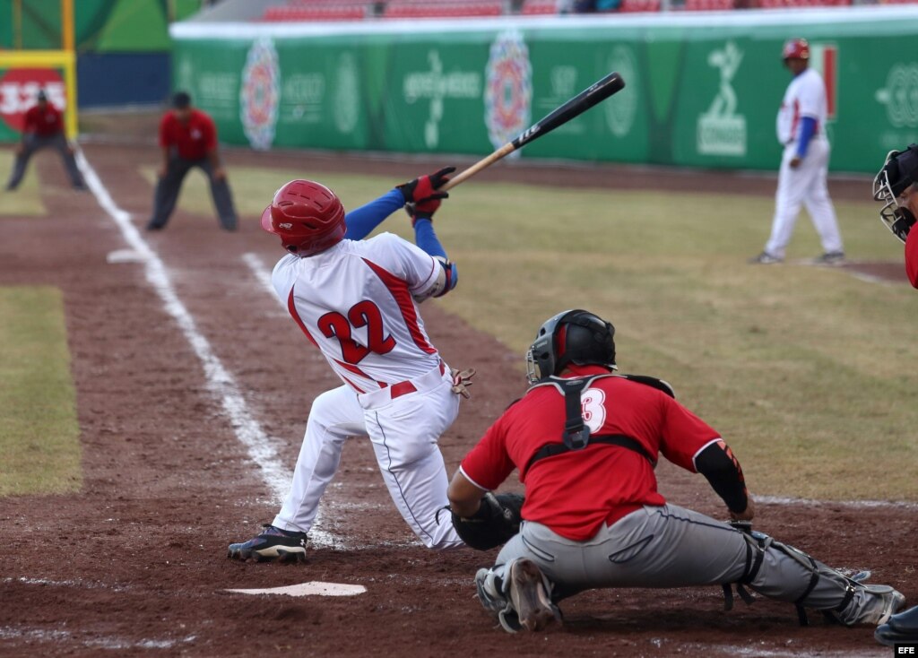 Yadiel Hernández (c) conectó un jonrón por Cuba frente a Dominicana en la semifinal del béisbol centroamericano.