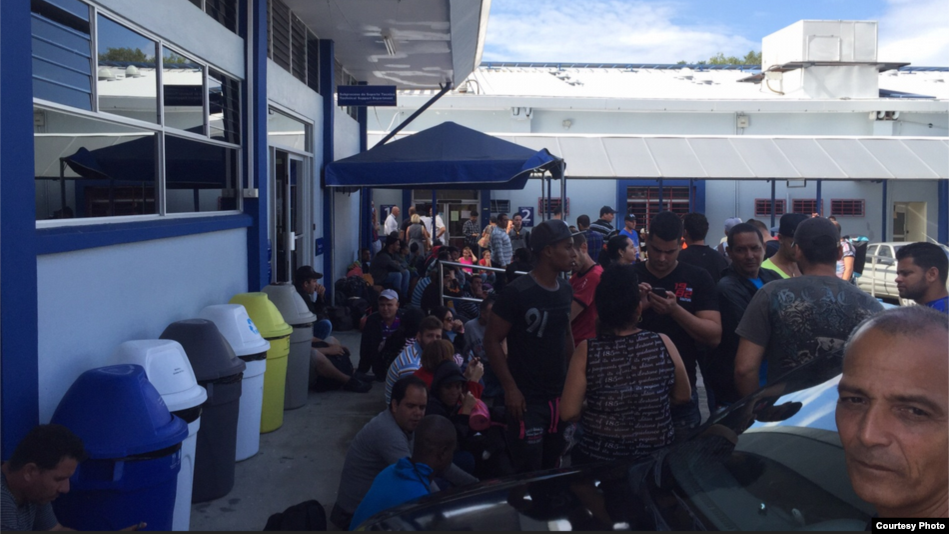 Cubanos varados en San José, Costa Rica, en las Oficinas de Migración. (Cortesía del diario La Prensa Libre)