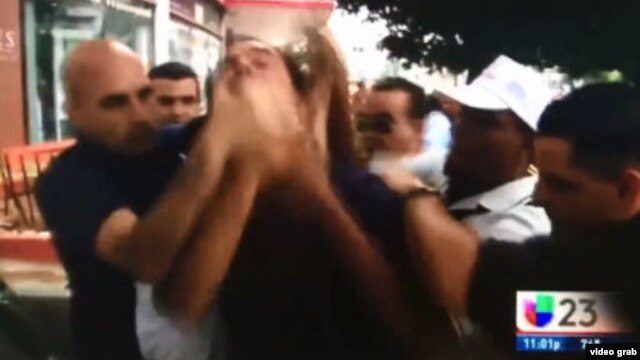 Agentes de civil tapan la boca del opositor cubano Lázaro Yuri Valle mientras grita "¡Vivan los derechos humanos!" (Univisión)