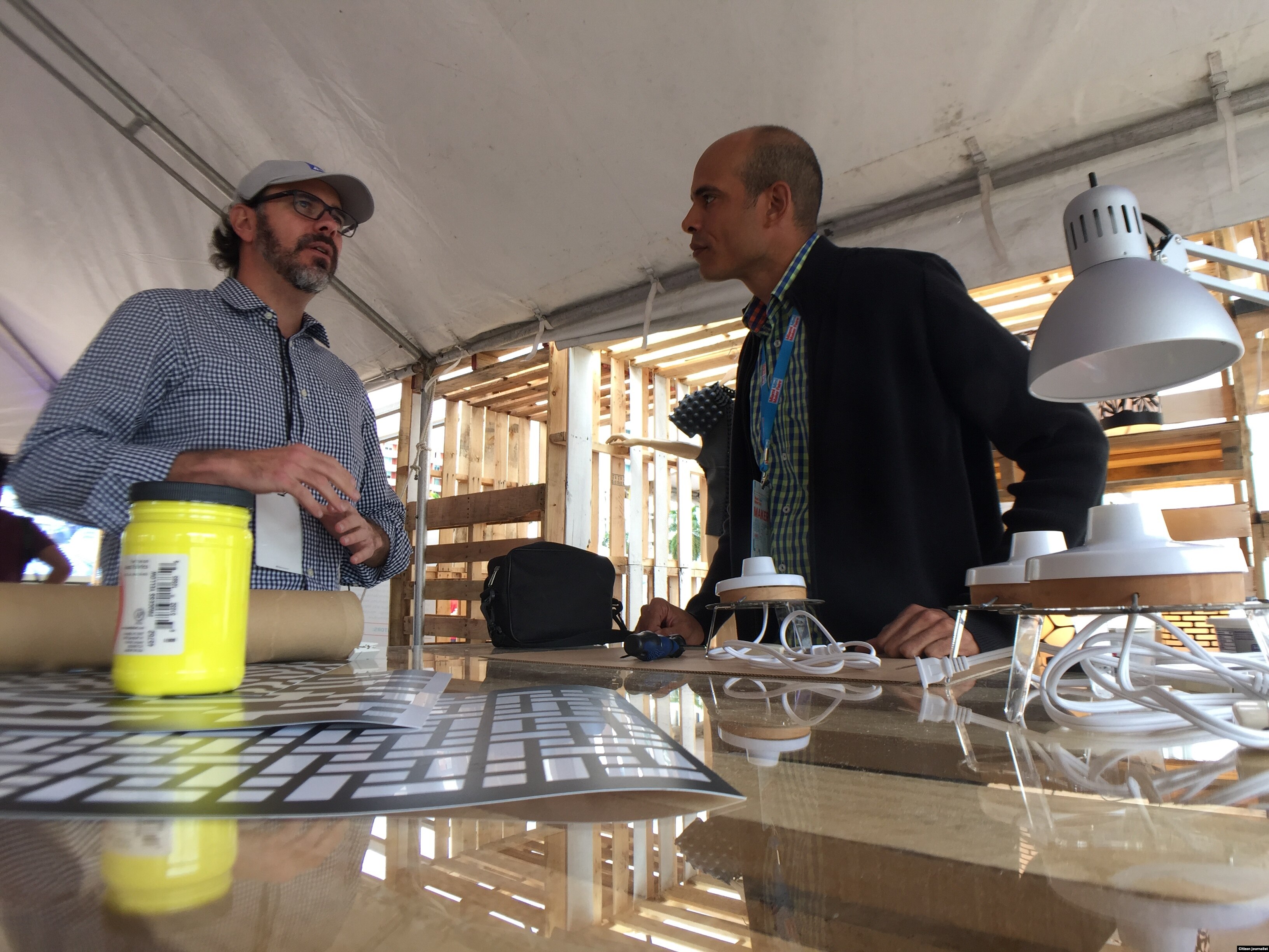 Es la Miami Mini Maker Faire en su terecera edición, y han venido los ‘hacedores’ de la Fábrica de Arte Cubano (FAC) que es una empresa que ha salido de la mente y el talento del músico X Alfonso. Junto a este pionero del afrorock en Cuba, llegaron los diseñadores Nelson Ponce, la orfebre portuguesa Sofía Márquez de Aguiar, el diseñador Gilberto Castanedo y el cineasta Inti Herrera, entre otros. Martí Noticias pudo conversar con varios de ellos.