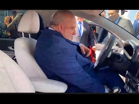 Primer Ministro Marrero casi no cabe en un Lada de 25 mil dólares en Rusia